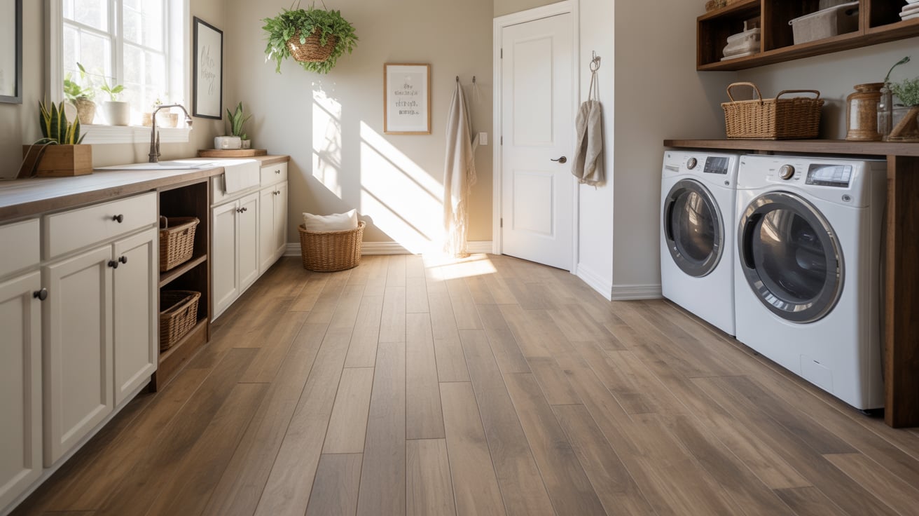 So grab your favorite coffee, and let’s explore how the right flooring can completely change the way your laundry room feels — functional, fresh, and full of personality. Because yes, even your laundry room deserves a little design love.
