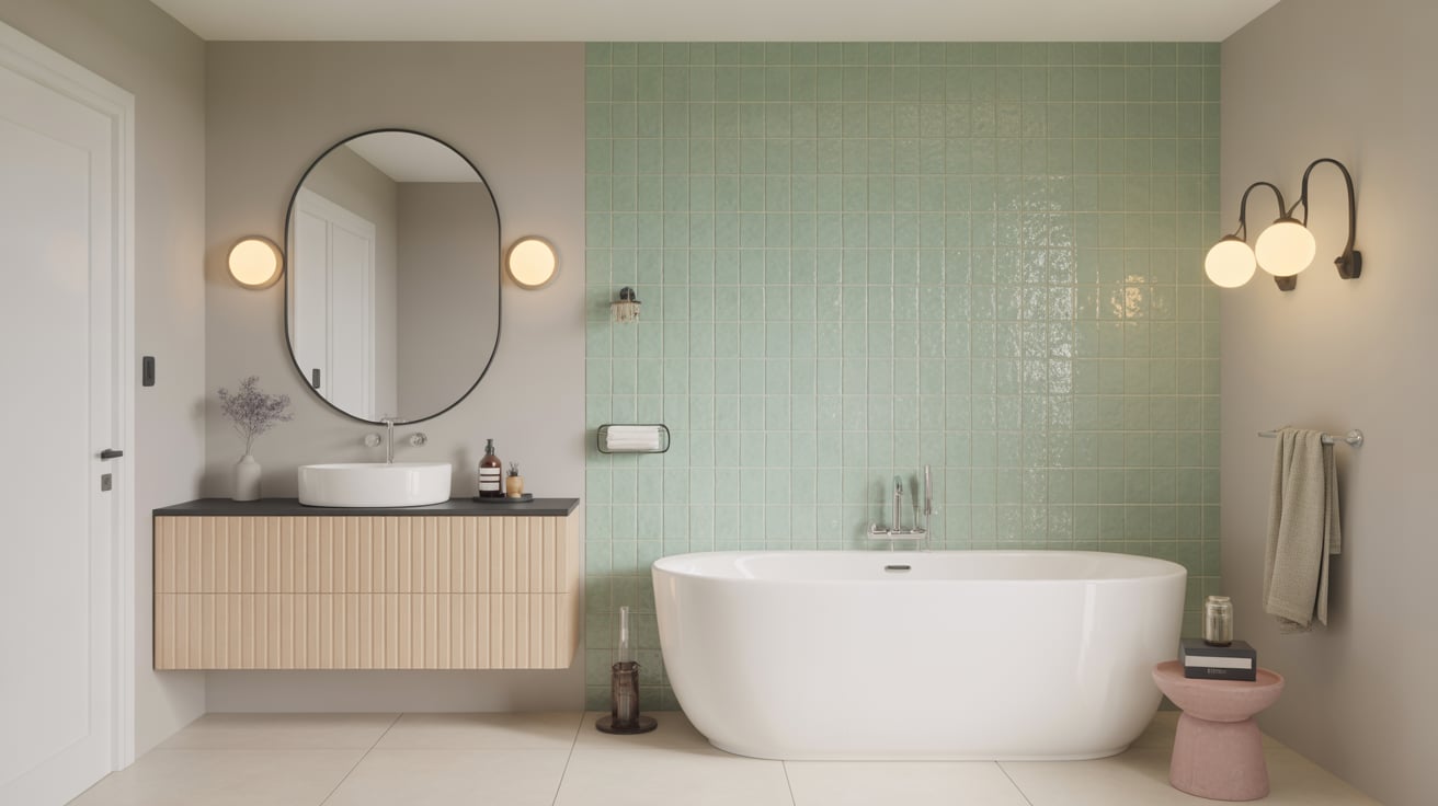 Accent walls work because they focus attention and add personality without repainting the entire room. Soft green tiles bring calm and style simultaneously.