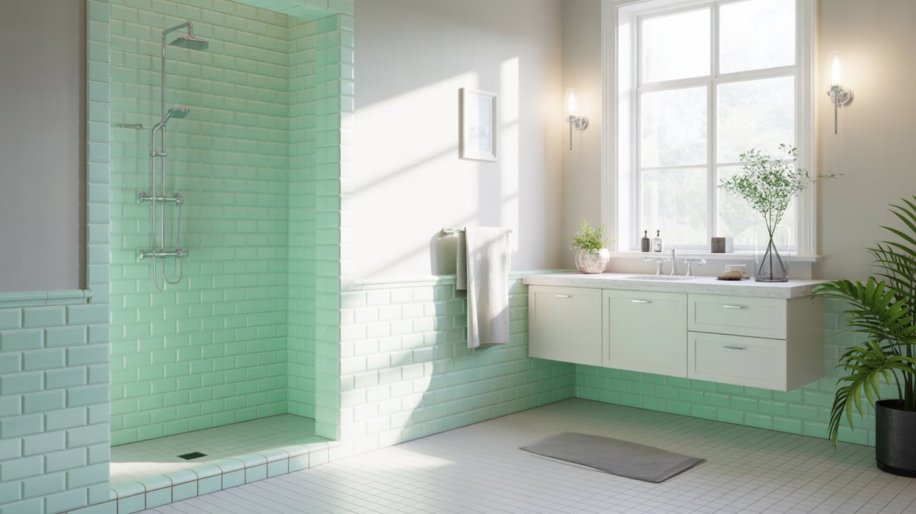 Subway tiles work because they provide texture and visual interest. The light green hue keeps the space feeling fresh, making it ideal for small showers or accent walls.