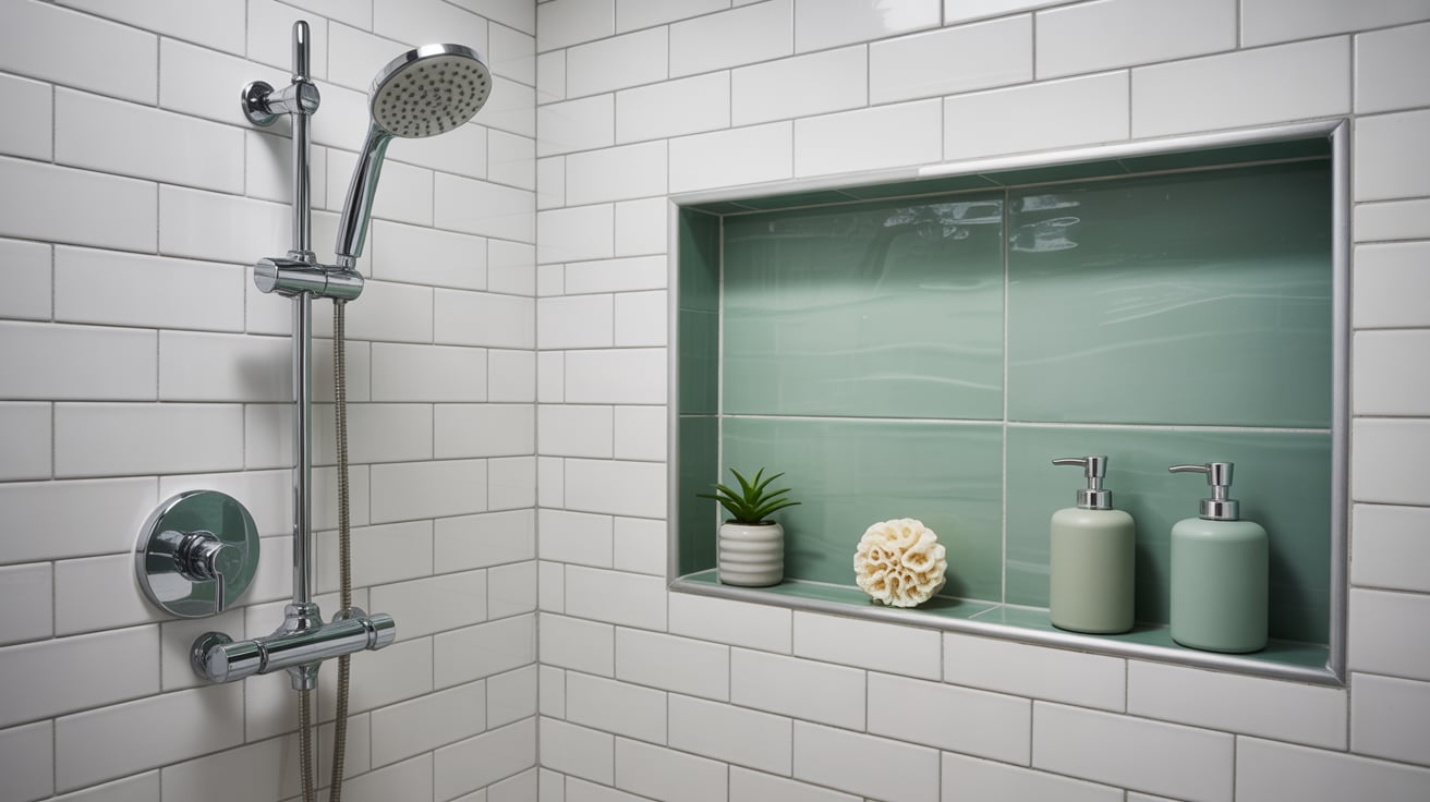 I painted a shower niche soft green in a mostly white shower. It added style and personality without overwhelming the space.