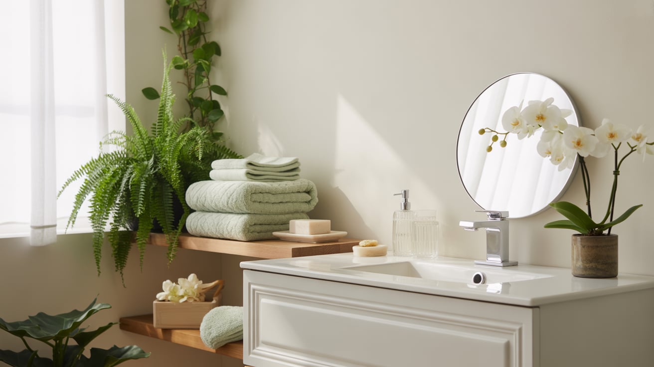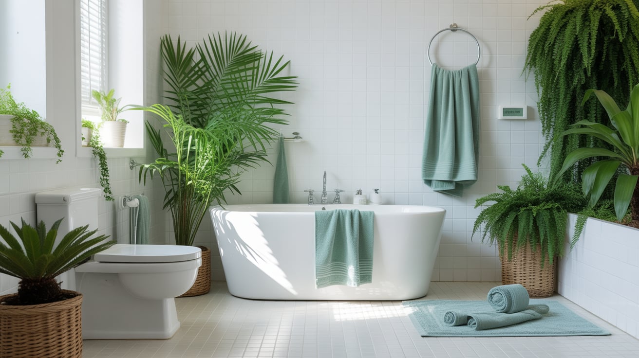 I decorated a white bathroom with lush green plants. Even without painting walls, the space instantly felt calm, fresh, and alive.