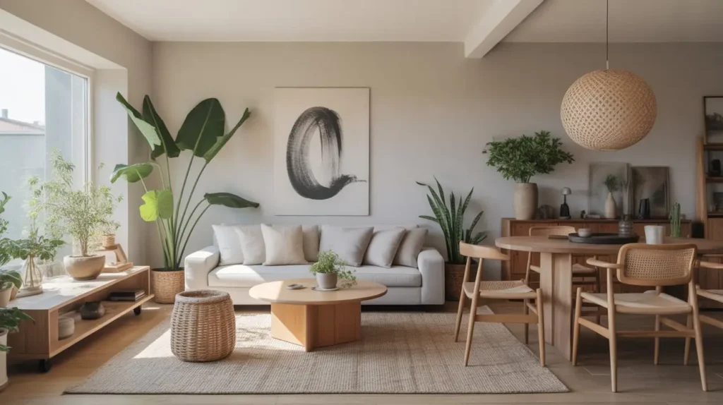Japandi combines the minimalism and craftsmanship of Japanese design with Scandinavian coziness, and the result works beautifully in combo spaces. You get pared-down elegance with warmth built in—the best of both worlds.