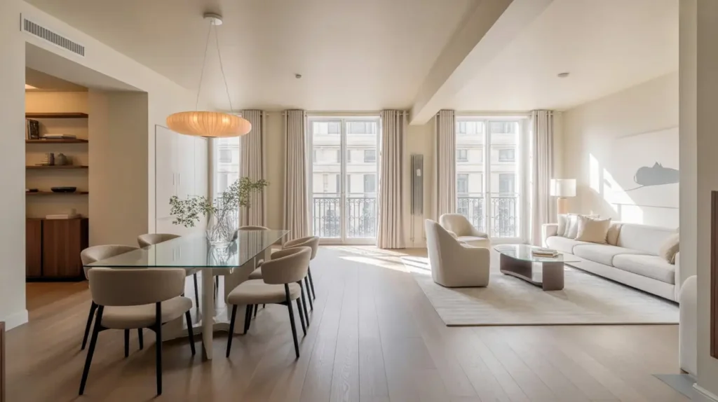 This style speaks to me personally because it eliminates visual clutter while maintaining that inviting warmth. Every piece matters, nothing competes for attention, and you create this peaceful, harmonious flow between living and dining areas.