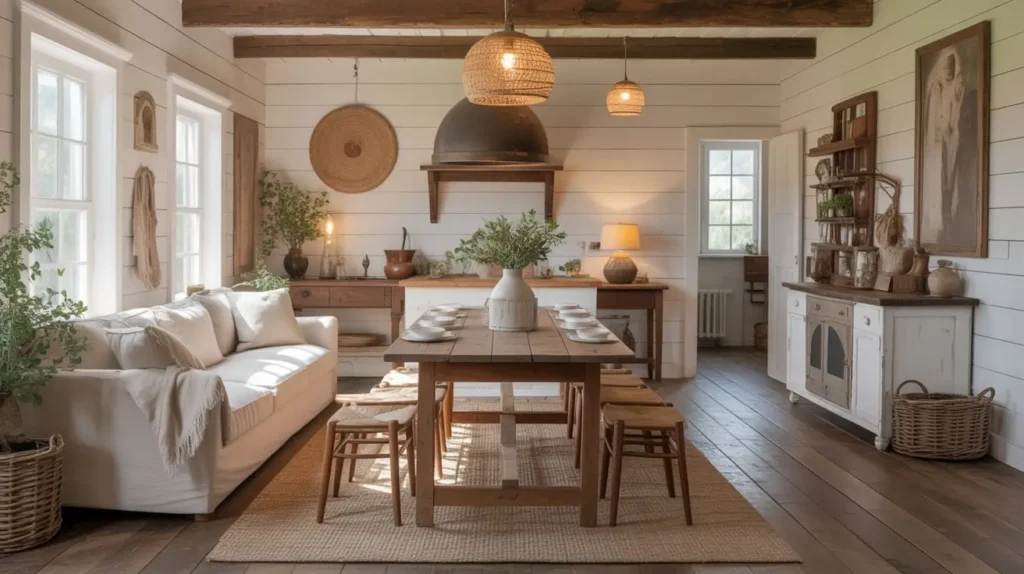 Okay, farmhouse style got a bit overdone thanks to certain TV shows, but hear me out. When you strip away the “Live, Laugh, Love” signs and excessive shiplap, you’re left with something genuinely warm and inviting. Rustic farmhouse combos excel at creating comfortable, lived-in spaces that beg you to gather around.