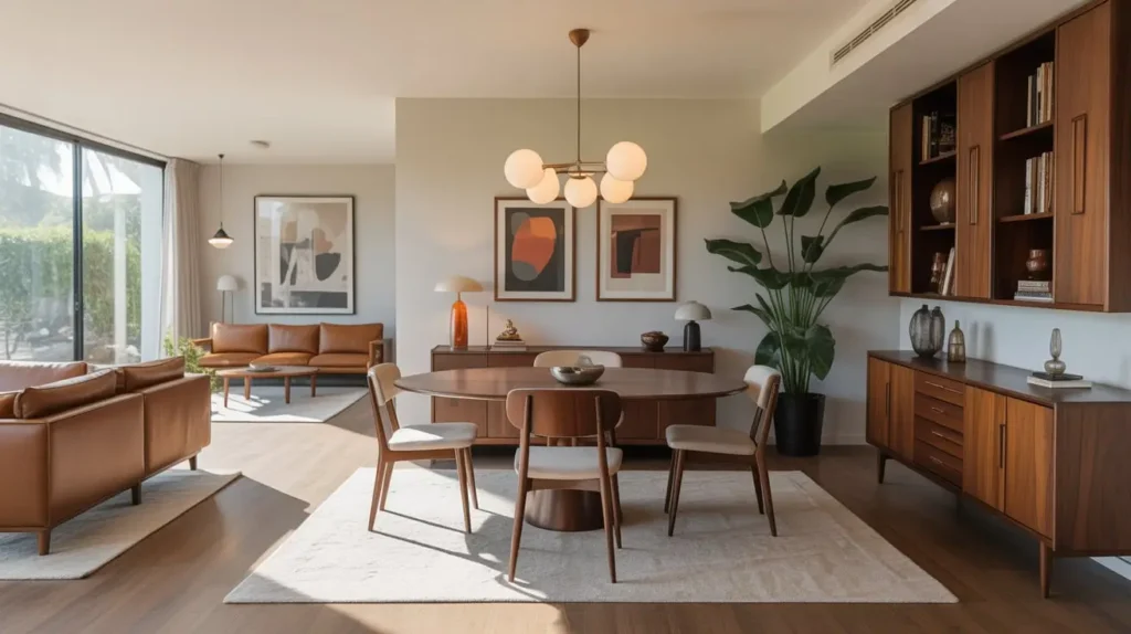 Keep the palette warm with rich wood tones and earthy accent colors. Add texture through woven chair seats, wool rugs, and nubby upholstery fabrics. The beauty of mid-century modern? It plays well with other styles, so you can mix in contemporary pieces without breaking the aesthetic. Your grandmother’s actual mid-century credenza looks amazing next to that West Elm sofa—trust me on this.