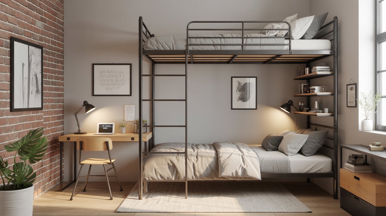 Industrial lofts work because the open metal frames create a light, airy feel. The design is both durable and stylish, perfect for modern small rooms.