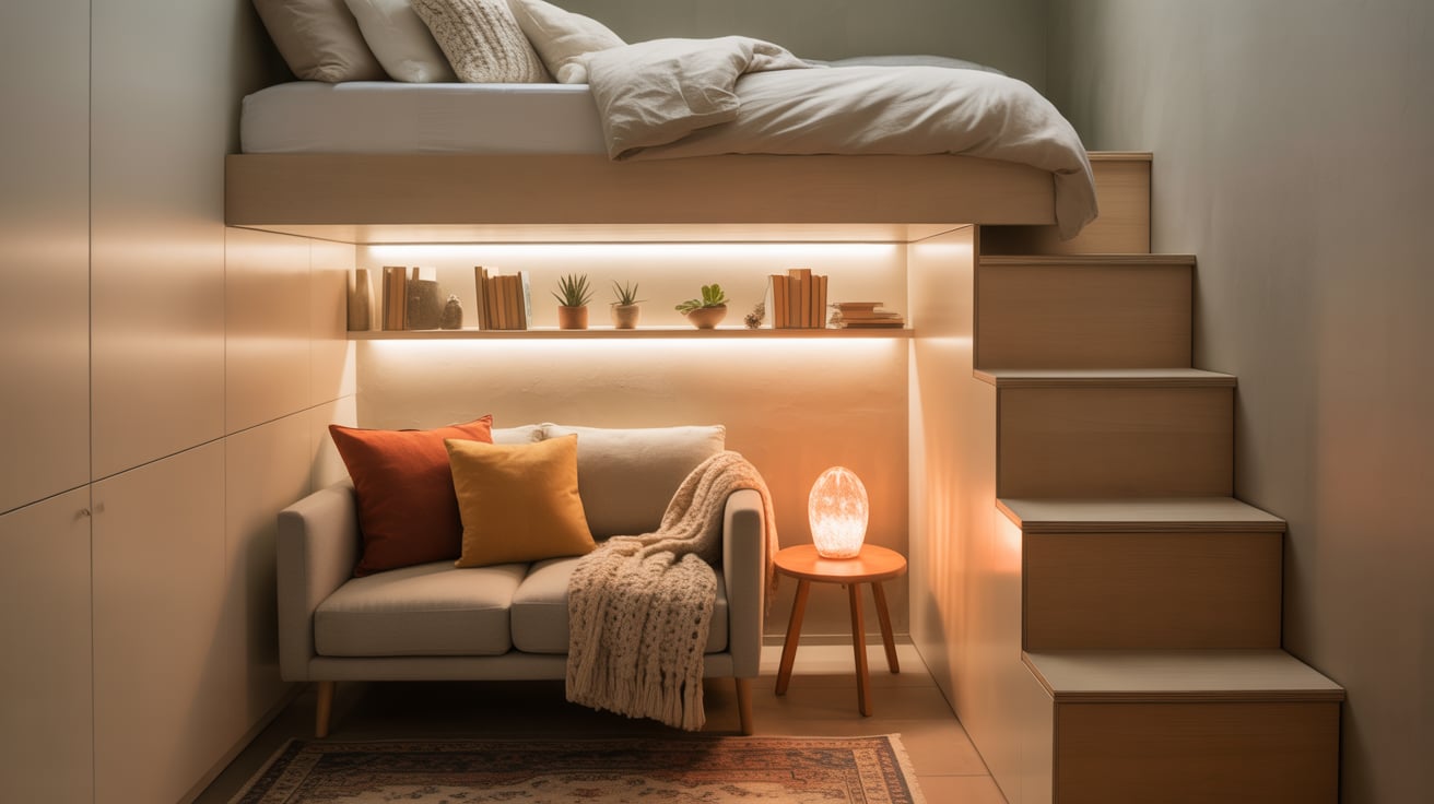 I love reading, but my tiny bedroom had no space for a chair. Adding a seating nook under my loft bed solved that problem — a small sofa and bookshelf fit perfectly. Now I have a cozy corner just for me.