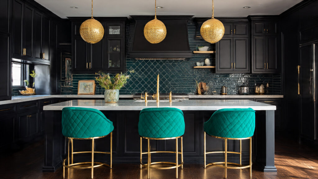 When I felt my black kitchen needed more personality, I added emerald bar stools — and suddenly it felt lively and designer-curated.