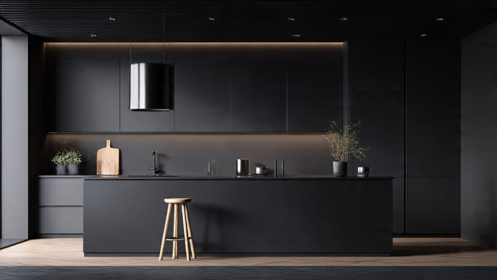 An all-black kitchen, when balanced with texture and lighting, radiates understated elegance. It’s about form, flow, and simplicity.