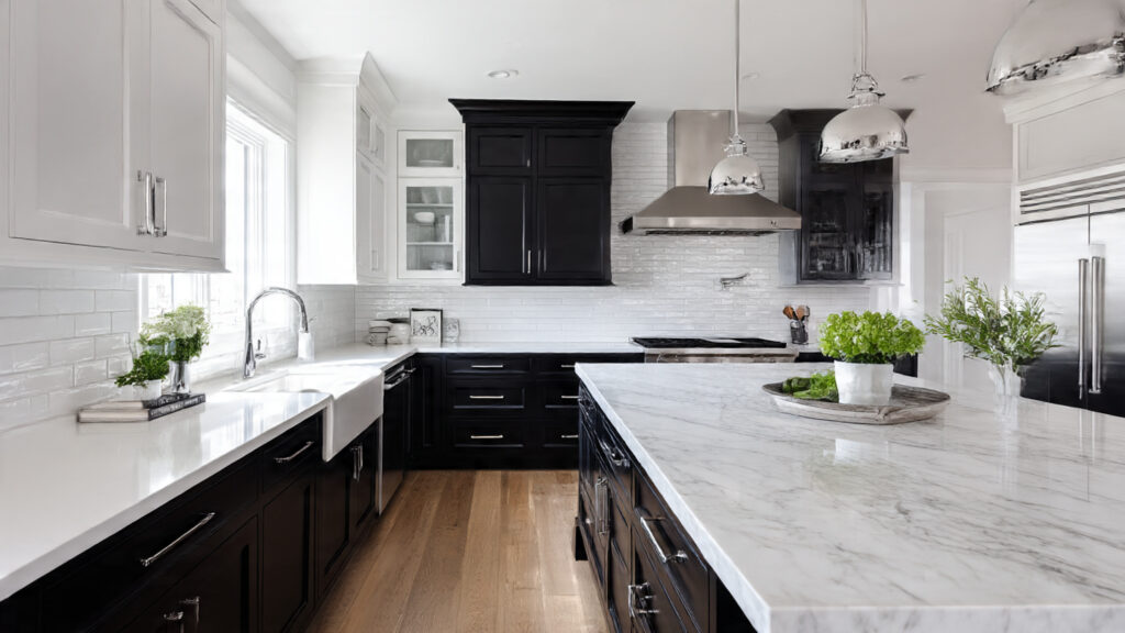 When I lived in my first apartment, my black cabinets made the kitchen look smaller. I added a white marble backsplash and everything changed — it suddenly felt open, bright, and balanced.