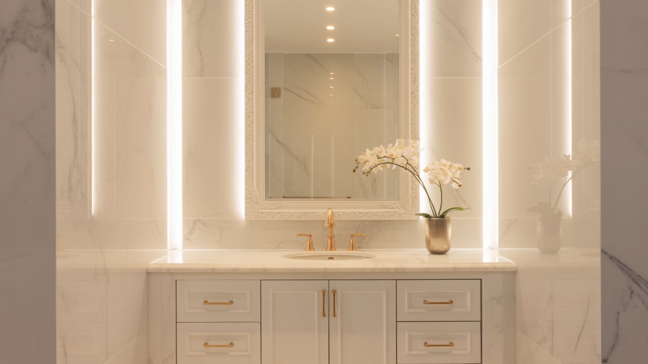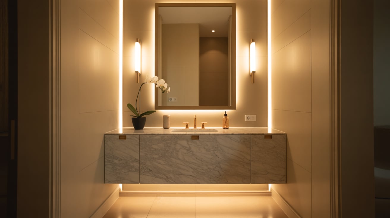 Lighting defines mood. Layered lighting brings warmth, depth, and comfort to any modern bathroom.