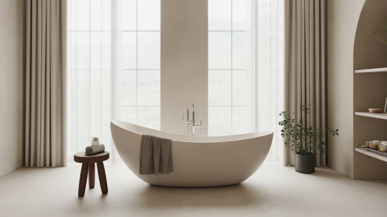 Freestanding tubs add sculptural beauty and elegance. Even in small bathrooms, they can serve as a stunning focal point.