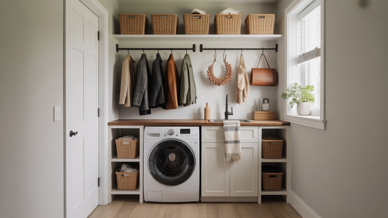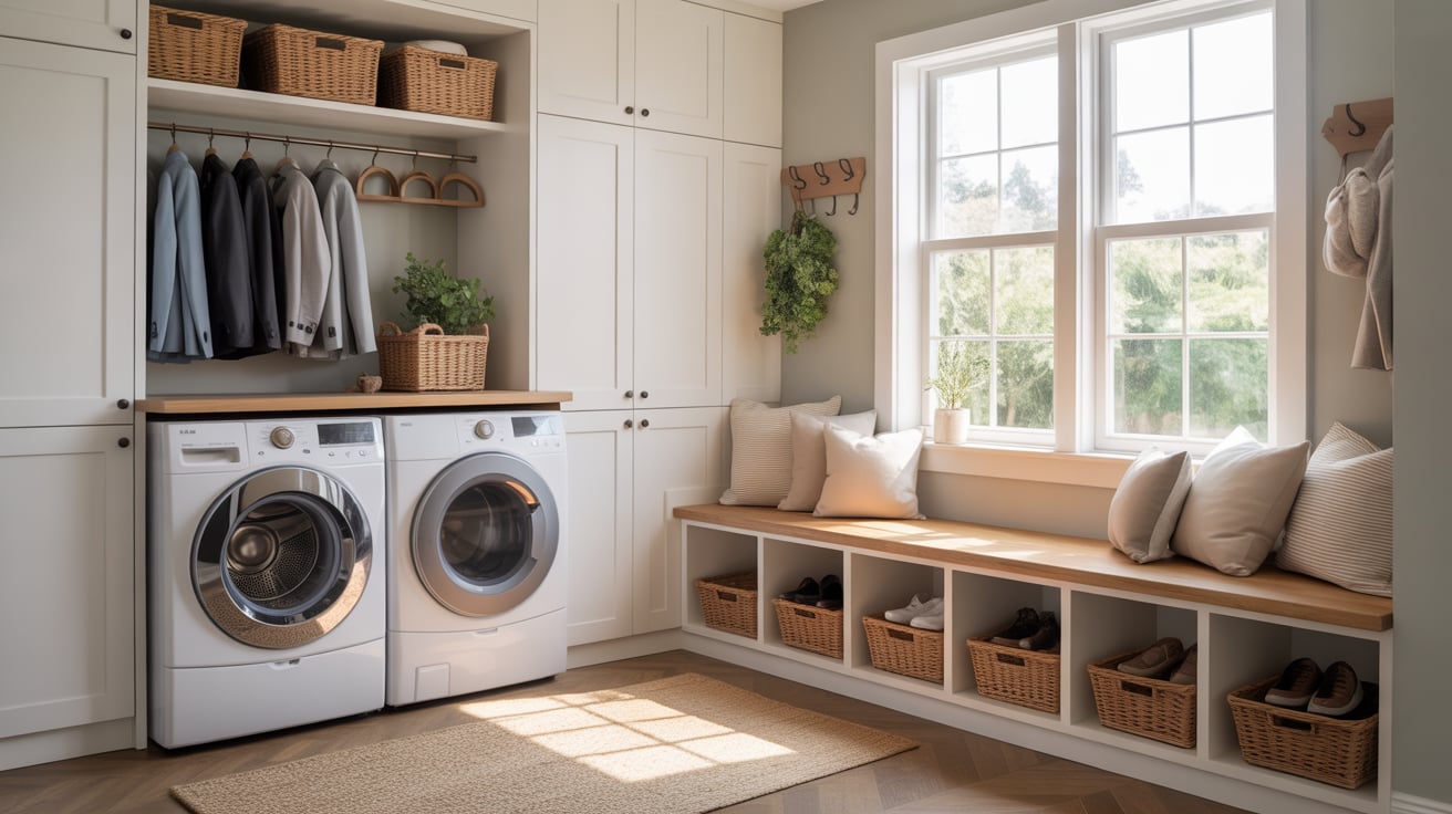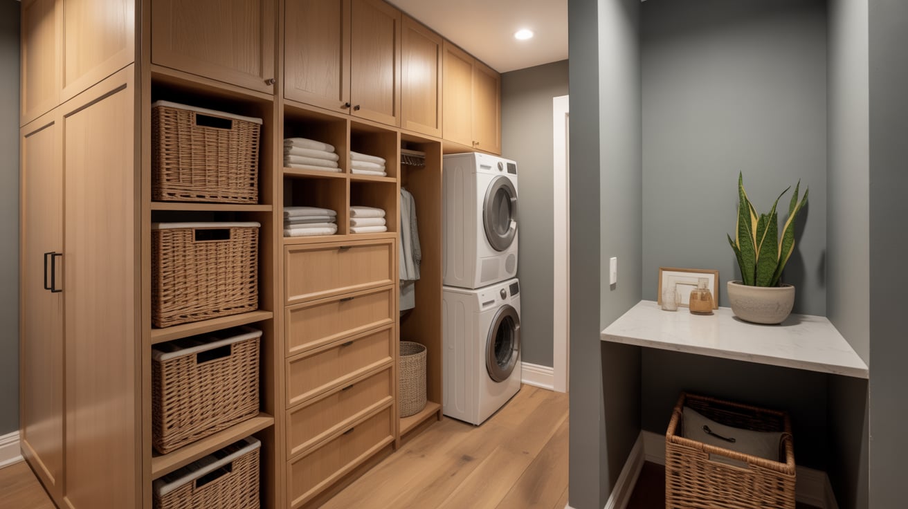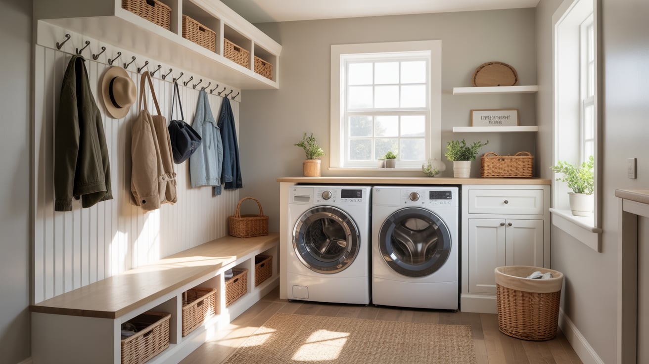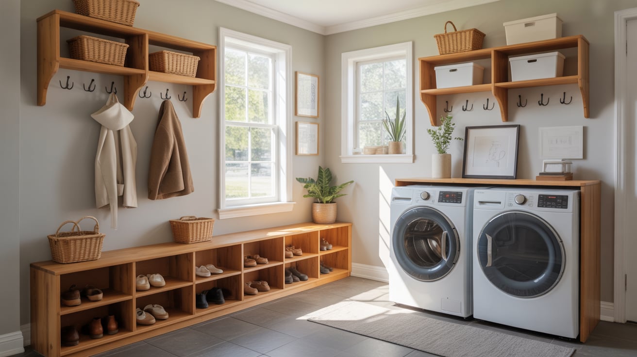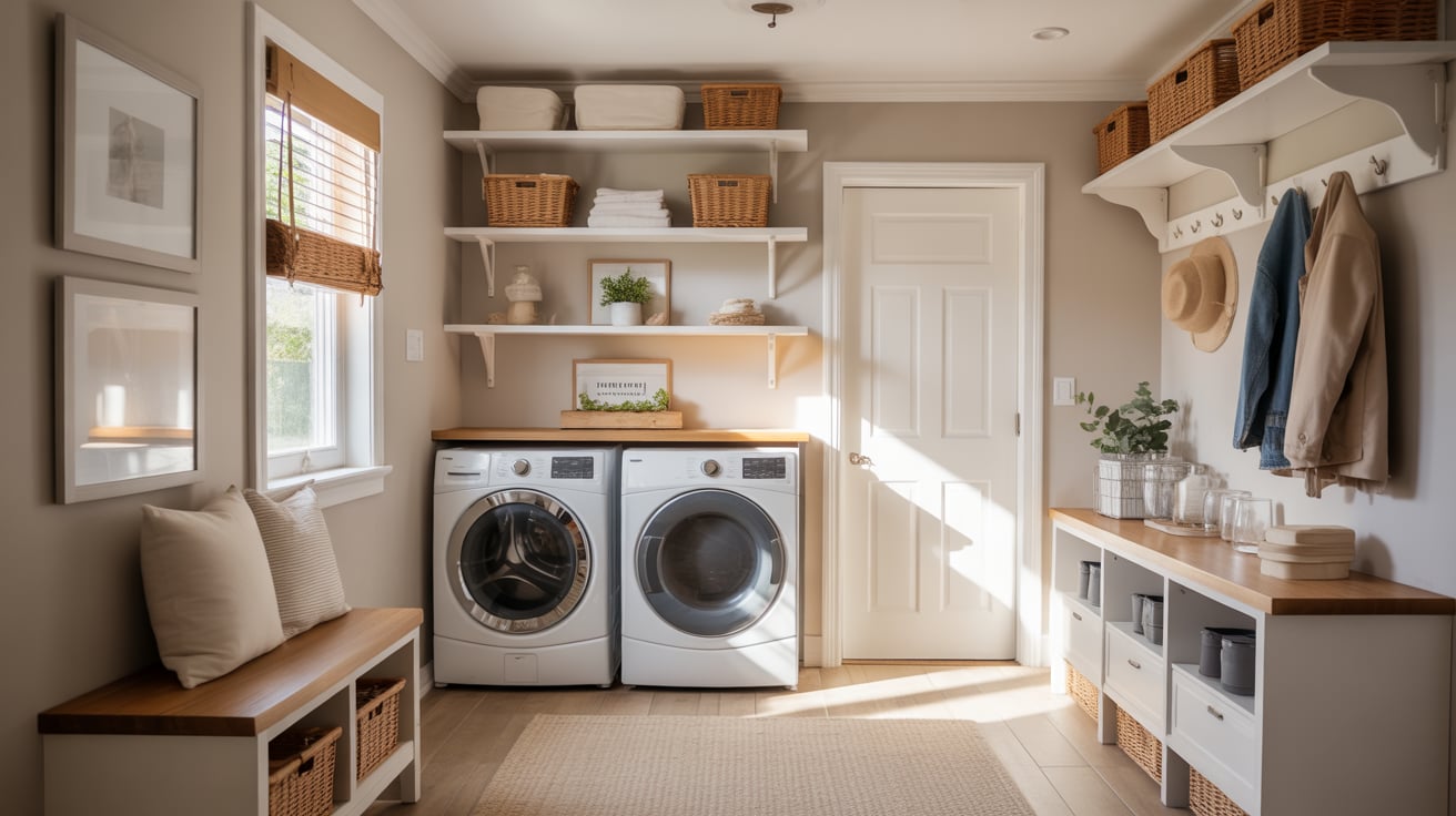 When I first tried to keep shoes and laundry baskets on the floor, it always looked messy. Installing a built-in storage bench transformed my combo space—shoes tucked neatly underneath, laundry baskets hidden inside, and a spot to sit while taking off muddy boots.