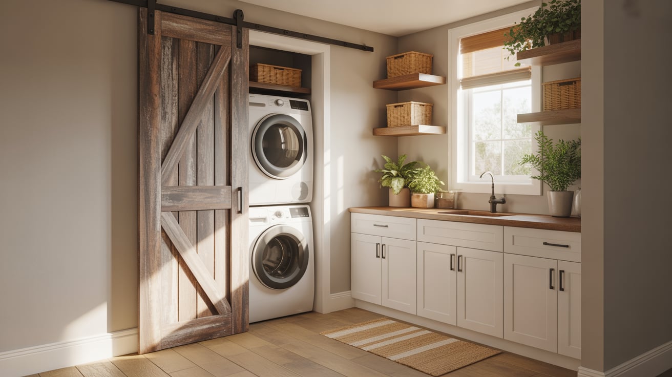 My old door constantly hit the laundry counter, blocking the path. Installing a sliding barn door made the room instantly more accessible.