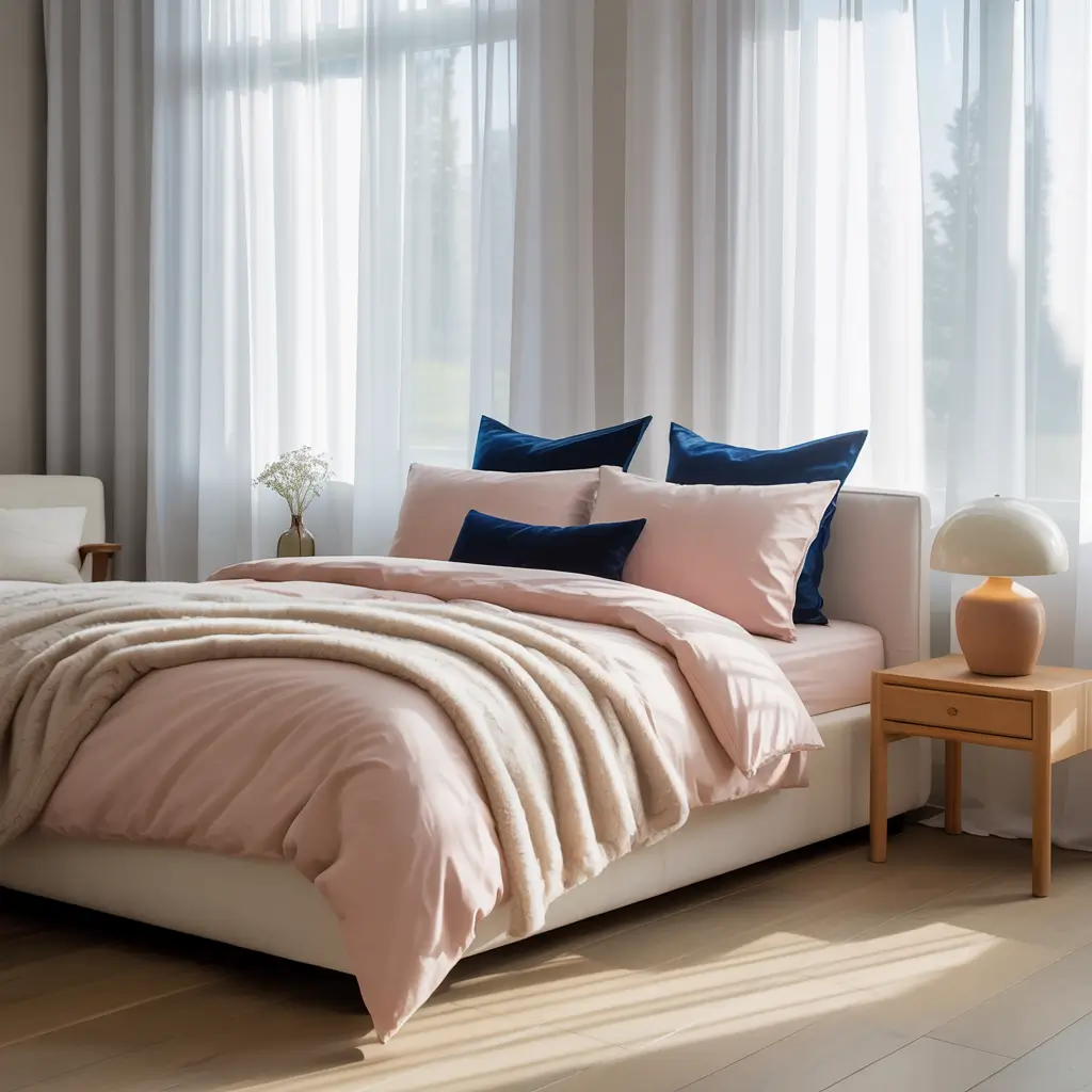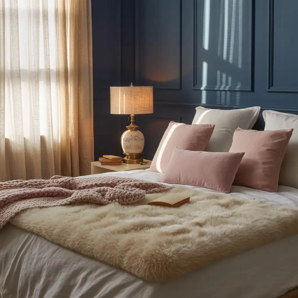 For the pink elements, think dusty rose or mauve rather than bubblegum. Add a plush velvet pink throw pillow set on navy bedding, or flip it—navy pillows on pink sheets. The key here? Texture. Layer different fabrics to create that high-end boutique hotel vibe.