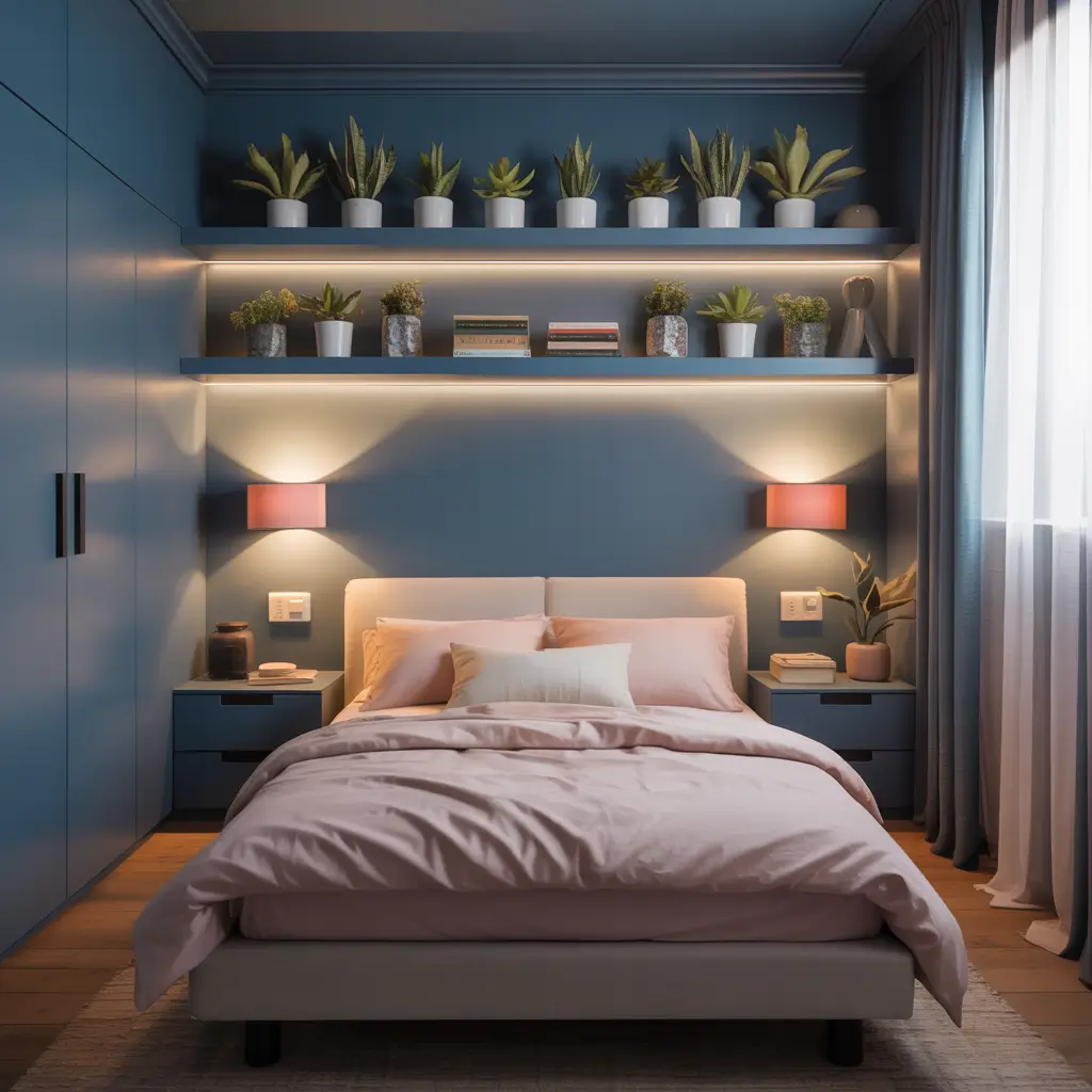 Small bedroom? No problem. This color combo actually works brilliantly in compact spaces if you’re strategic about it.