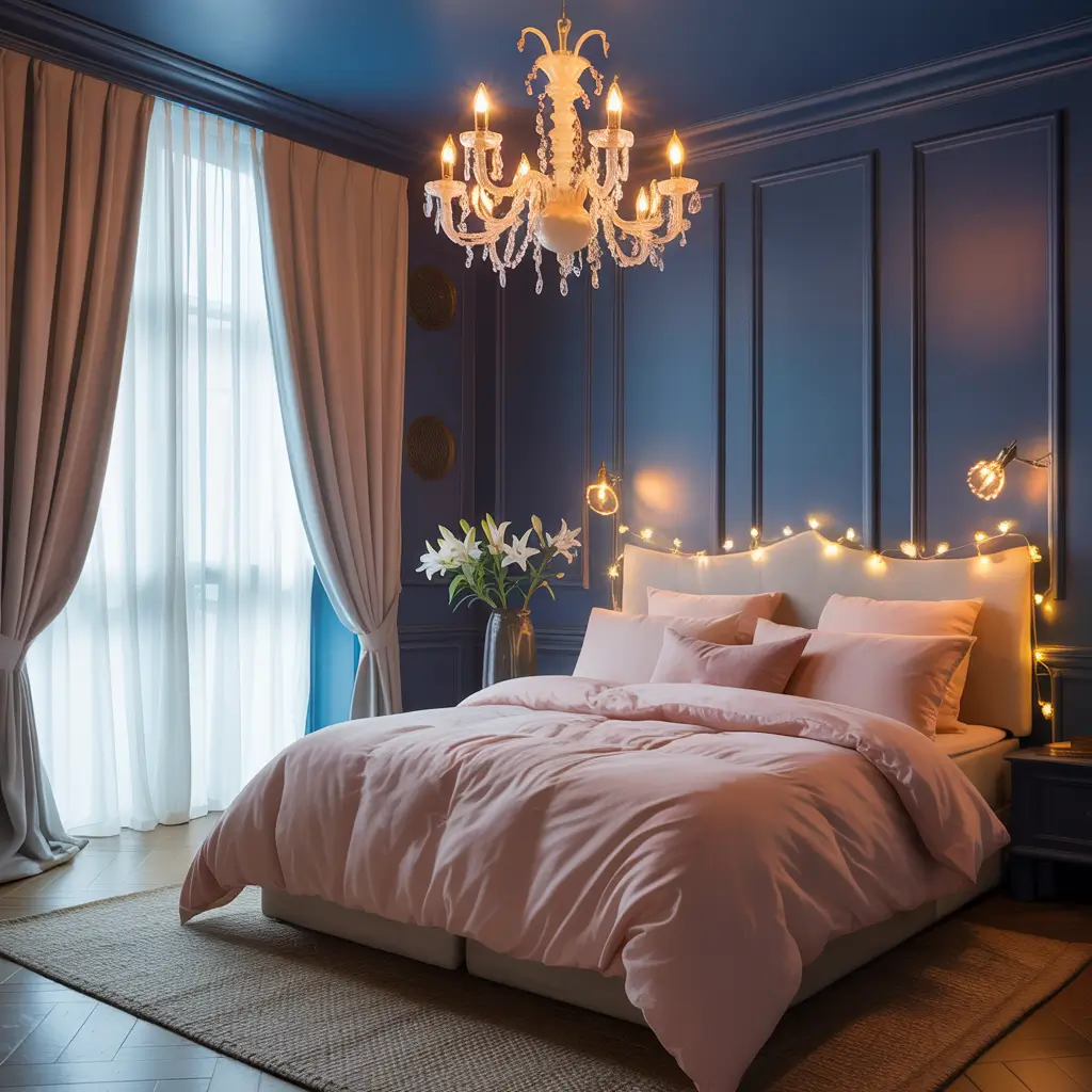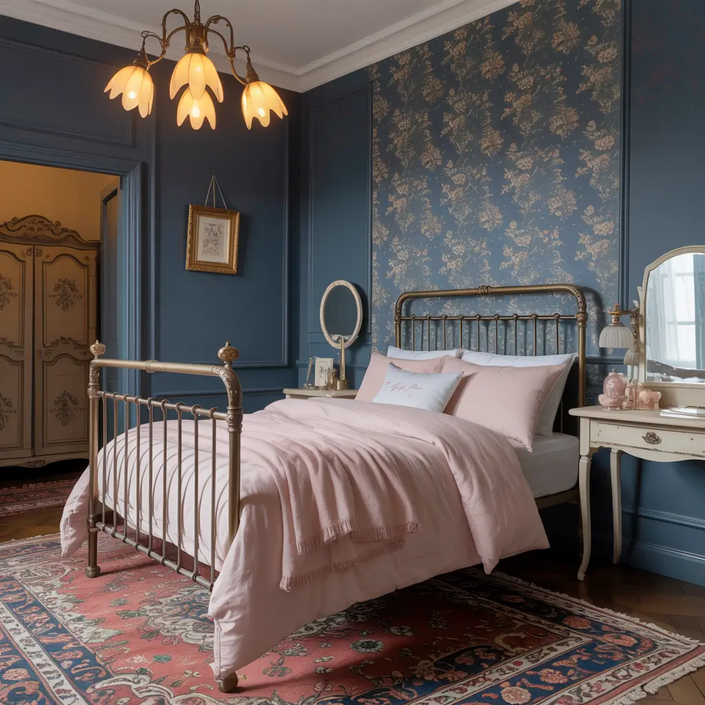 Start with navy as your dominant color—navy walls, navy bedding, navy curtains. Then strategically pepper in pink accents like you’re seasoning a dish. Too much? Overwhelming. Just enough? Chef’s kiss.