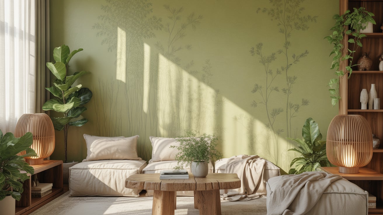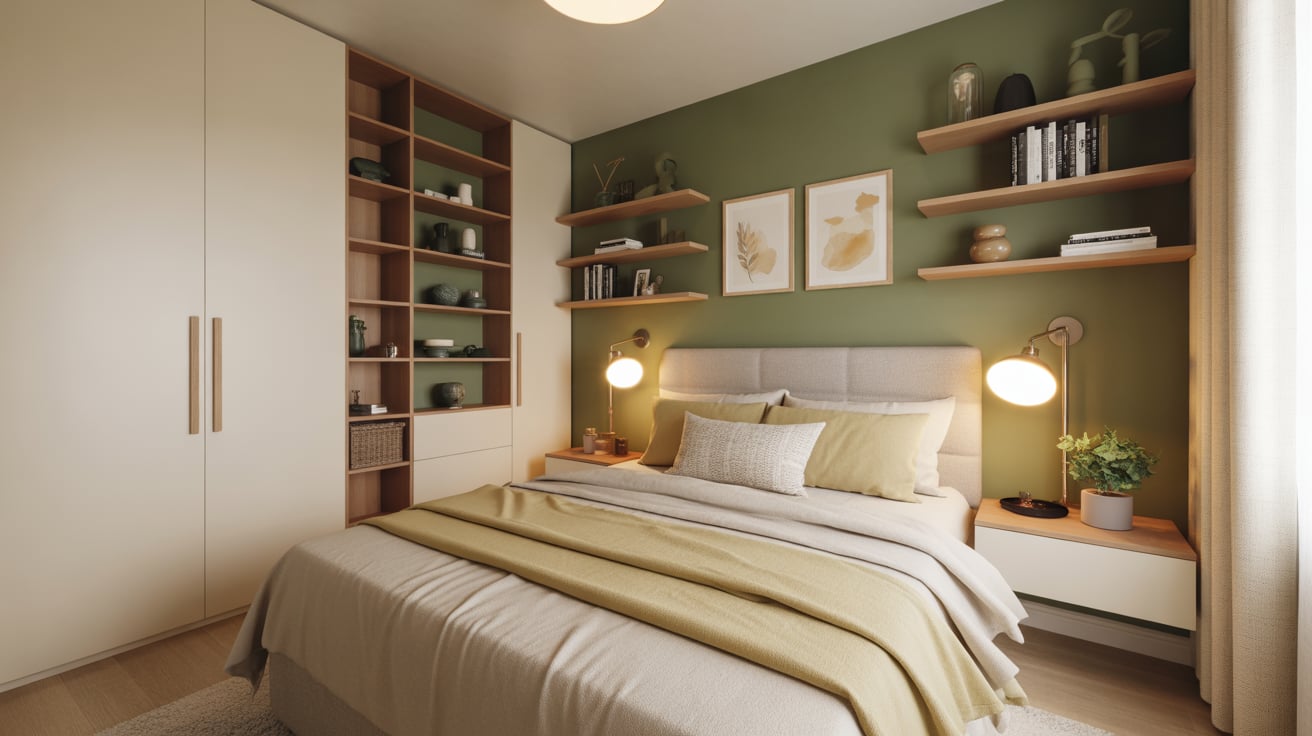 This design works because it adds dimension while keeping the rest of your room airy and neutral. Beige walls or decor pieces balance the green perfectly, creating a cozy yet modern aesthetic.