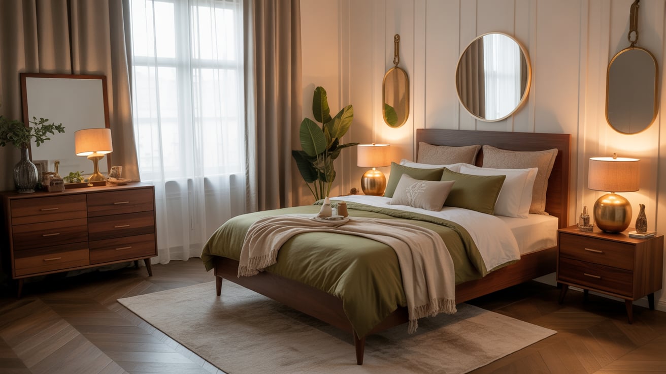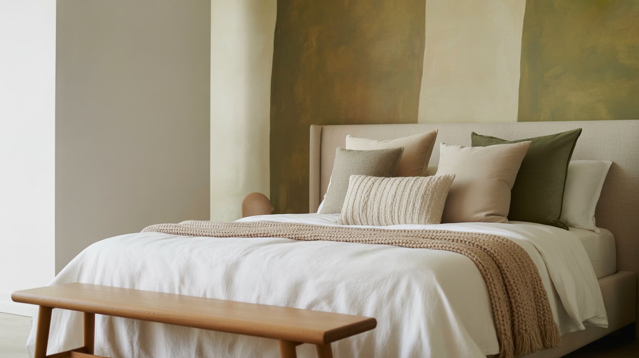 The first time I mixed velvet, linen, and wood in olive and beige tones, my room felt like a spa retreat. The textures made everything feel more luxurious without being overwhelming.
