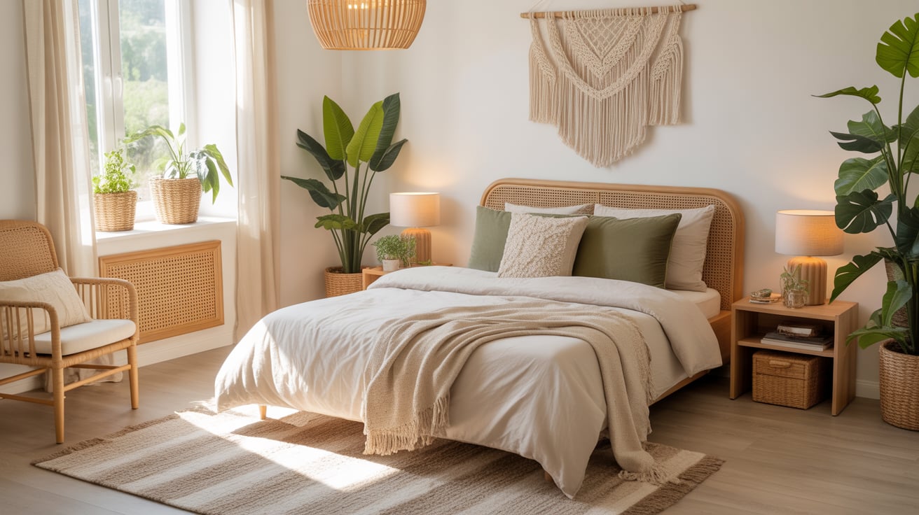 - Add woven baskets or rattan decor.