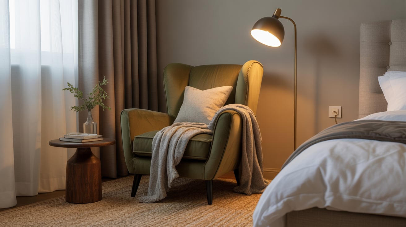 Include an olive green chair in a corner for reading or relaxing. This adds a stylish pop of color without overwhelming the room.