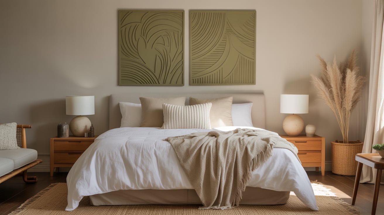 This combination adds a grounded, organic feel that makes your bedroom cozy, inviting, and Pinterest-worthy.