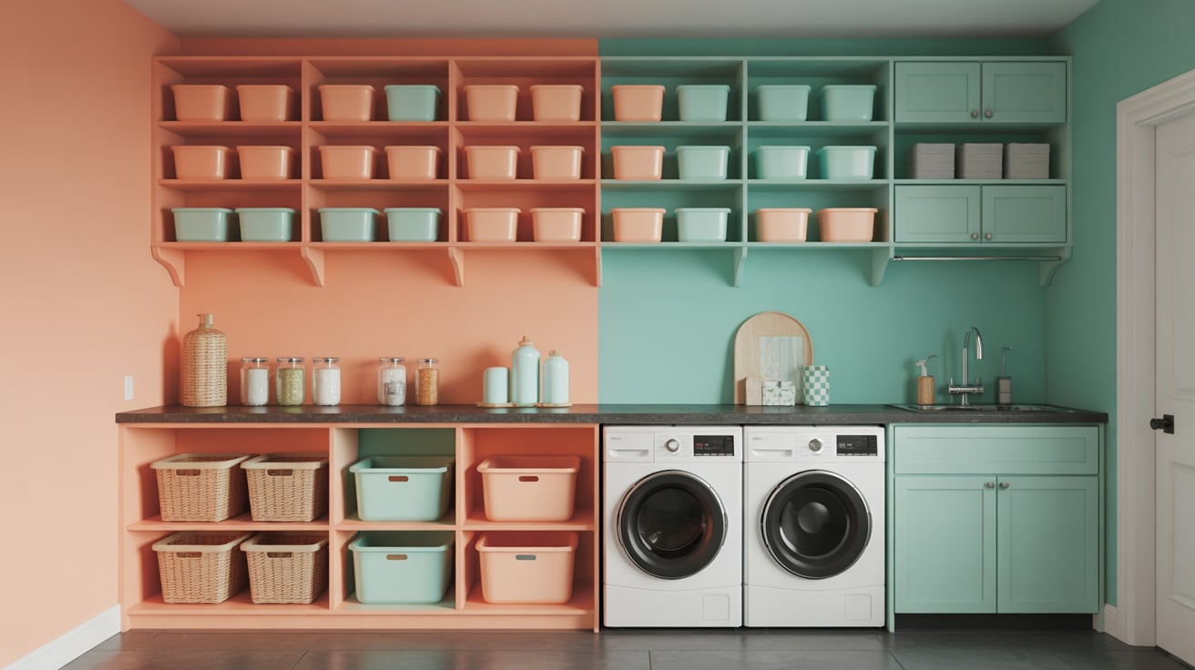 I once struggled with chaos — spices mixed with detergents! Then I used color to separate zones: warm tones for pantry, cool tones for laundry.