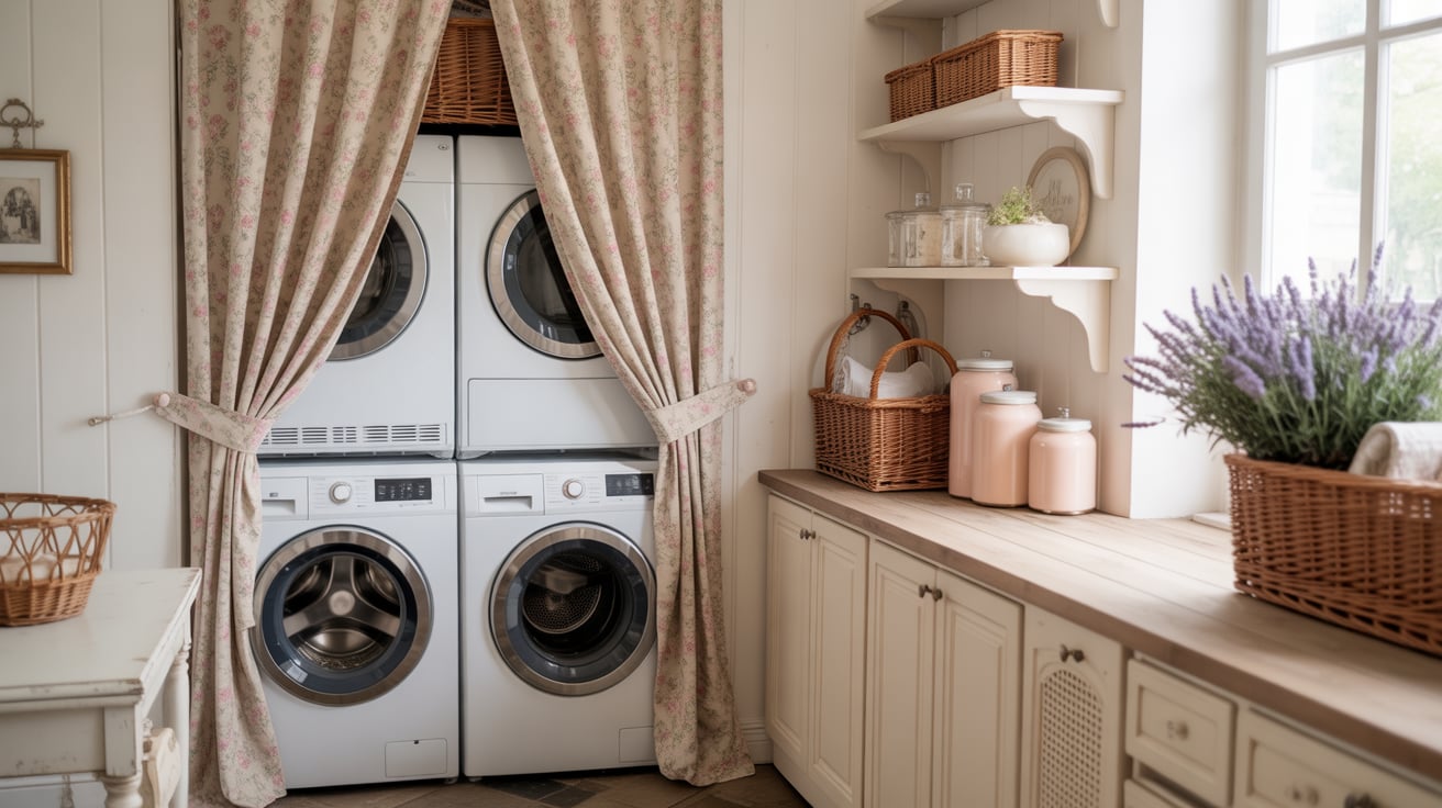 While staying in Provence, I saw a beautiful home where the laundry was hidden behind floral curtains next to the pantry — so chic yet simple.