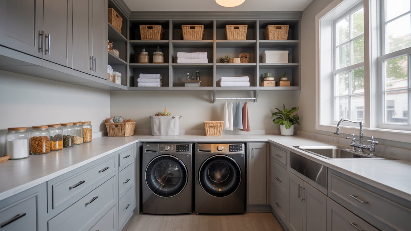 By the end, you’ll know exactly how to design a dual-purpose space that’s clean, efficient, and aesthetically pleasing — where folding laundry feels effortless and grabbing ingredients for dinner doesn’t mean tripping over detergent bottles. Let’s transform that “I have no space” stress into a “why didn’t I do this sooner?” moment.