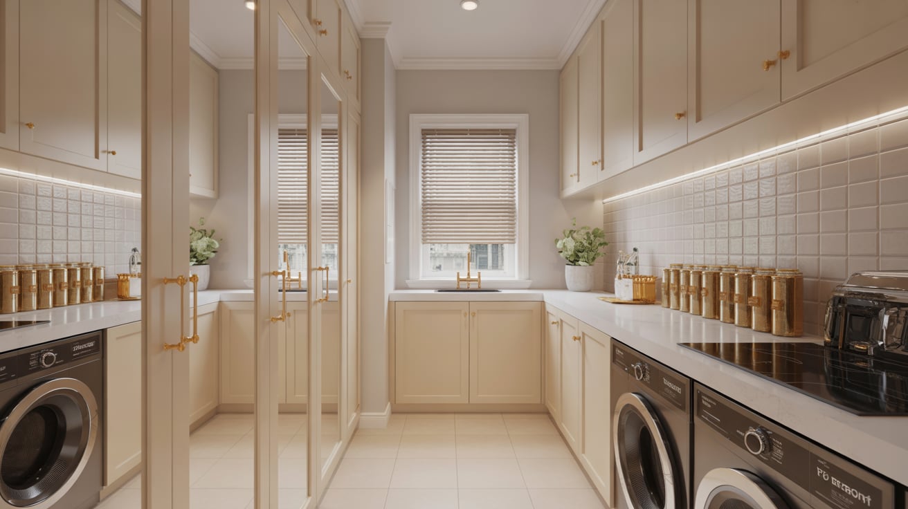 When I helped a friend design her condo, we used mirrored cabinet fronts — and suddenly, the narrow pantry-laundry combo looked twice its size.