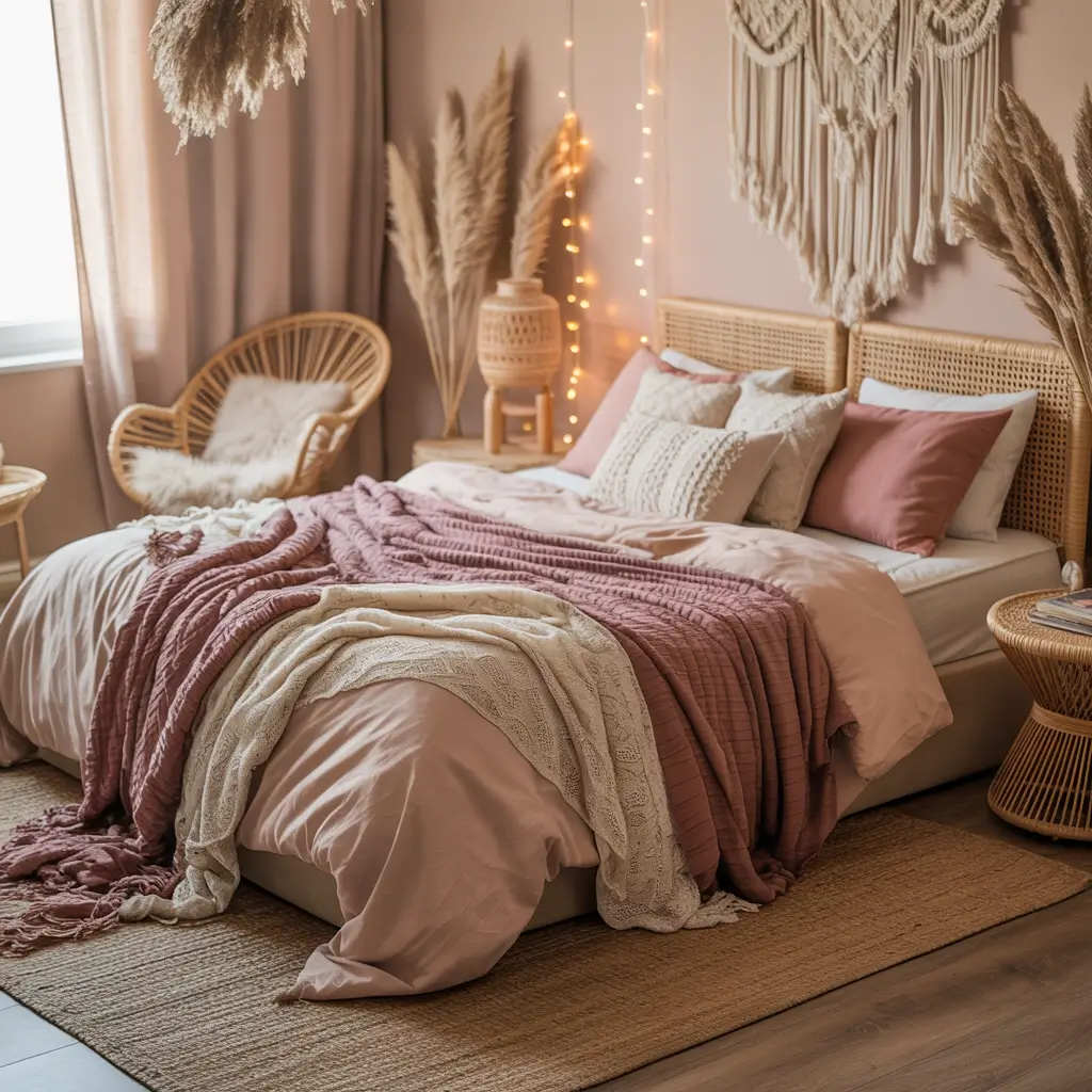 Here’s the thing about boho style—it gives you permission to break the rules. Mix patterns, combine textures, add that random vintage mirror you found at a flea market. The dusty rose color keeps everything cohesive even when you’re layering like crazy.