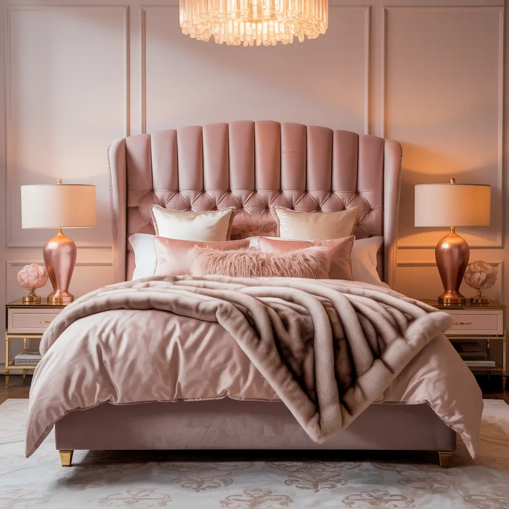 If “extra” were a bedroom style, it would be rose gold luxe. And I’m not mad about it.
