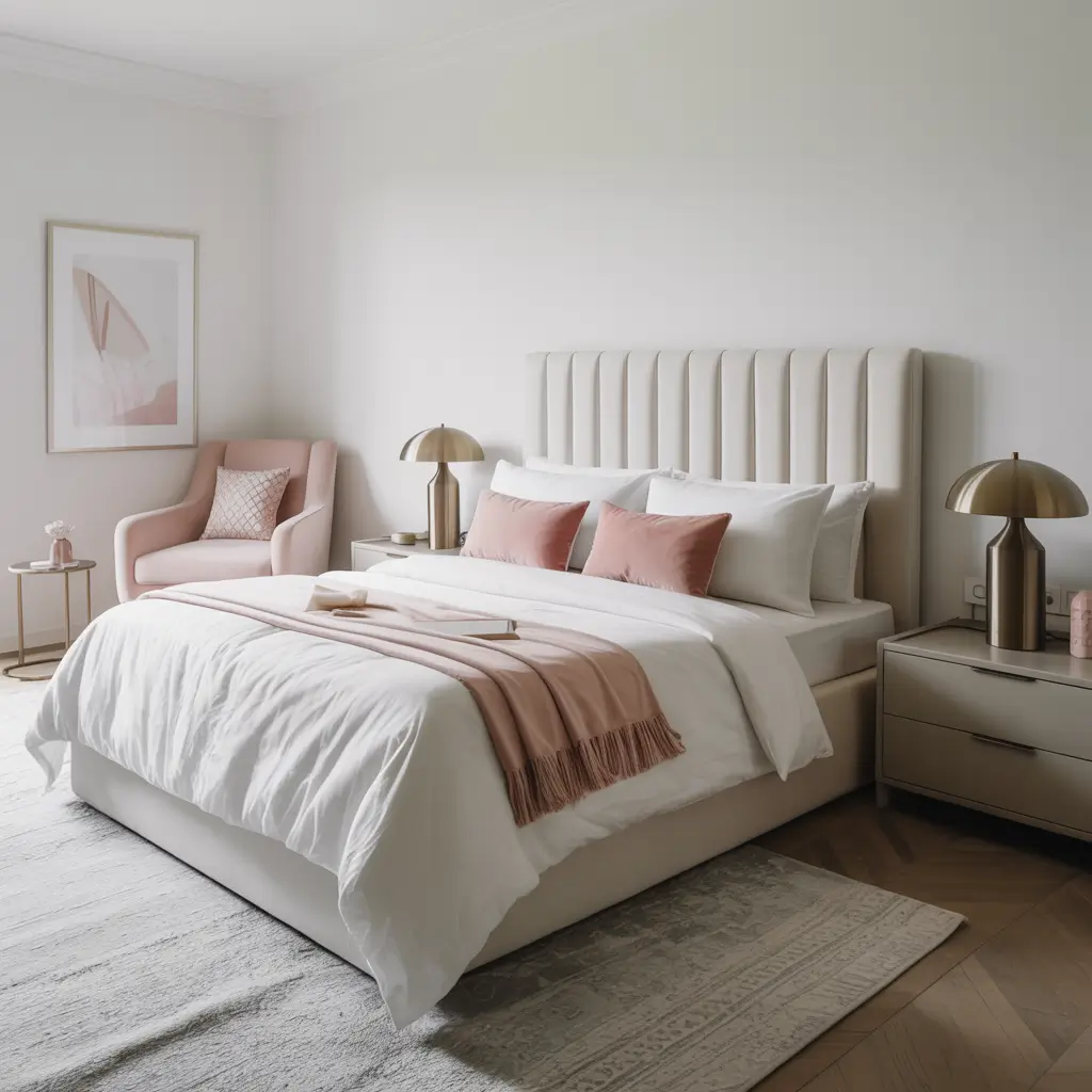 This look centers around soft blush tones paired with luxurious velvet textures. Picture this: a plush velvet headboard in that perfect pale pink shade, crisp white linens, and maybe one or two carefully chosen decor pieces. The key word here is restraint—you’re not trying to fill every corner.