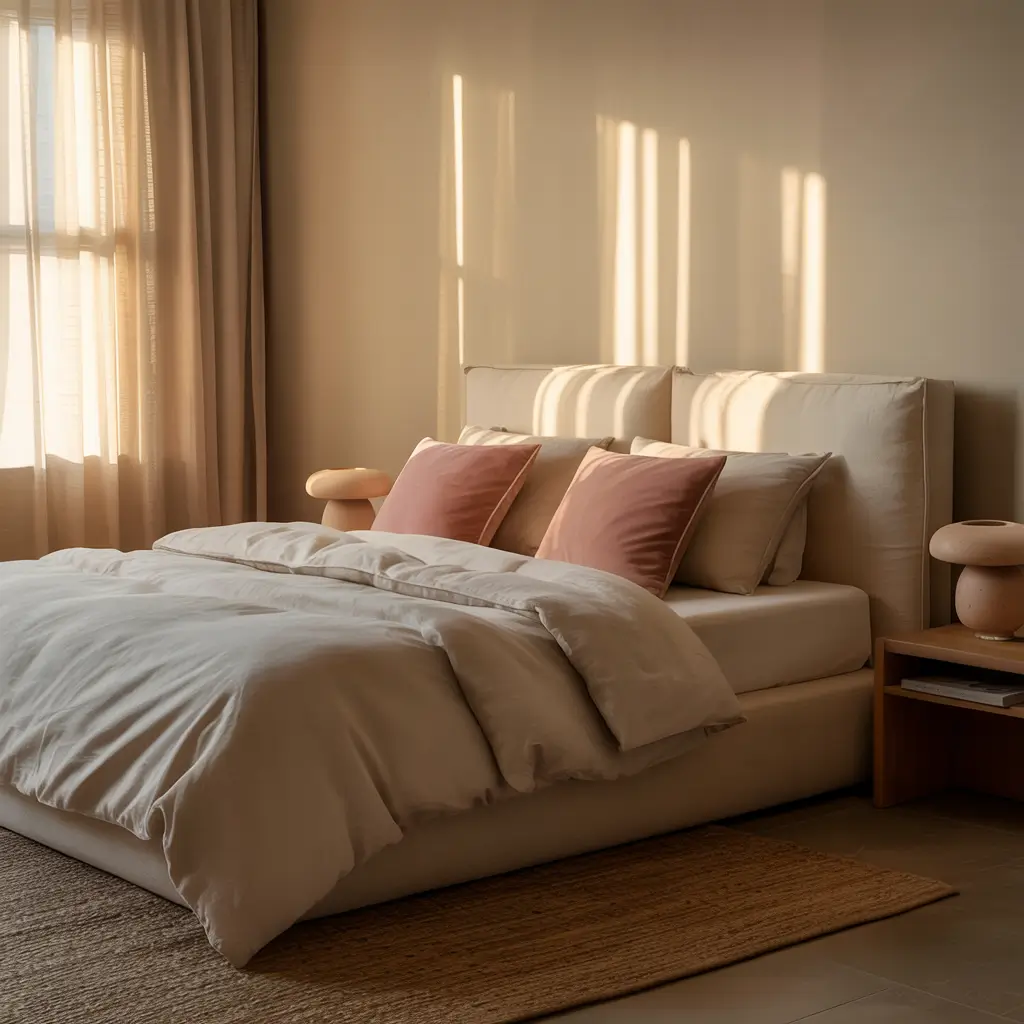 Ever walked into a room and felt like you could just exhale all your stress? That’s what a blush velvet minimalist bedroom does to you.
