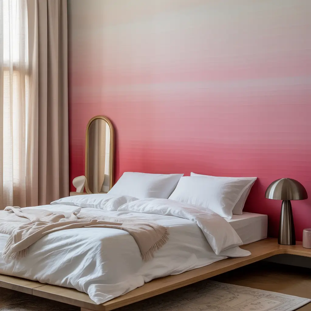 The ombre wall also gives you flexibility. You can go subtle with close shades for a sophisticated look, or dramatic with high-contrast pinks for something bolder. Either way, it’s guaranteed to be a conversation starter.