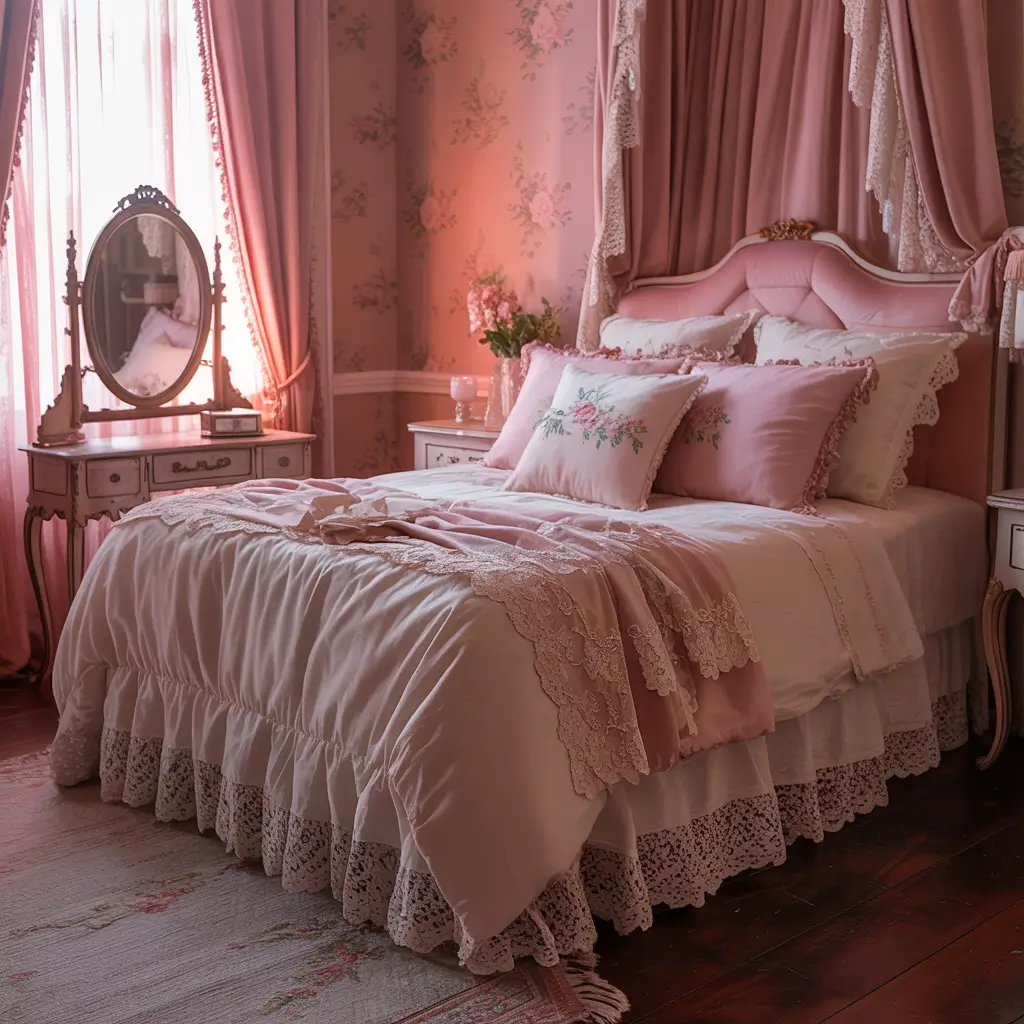The pink vintage romantic style channels old Hollywood glamour, Victorian elegance, and timeless femininity. We’re talking about ornate details, soft colors, and that dreamy, romantic atmosphere that makes you feel like the main character in a period drama.