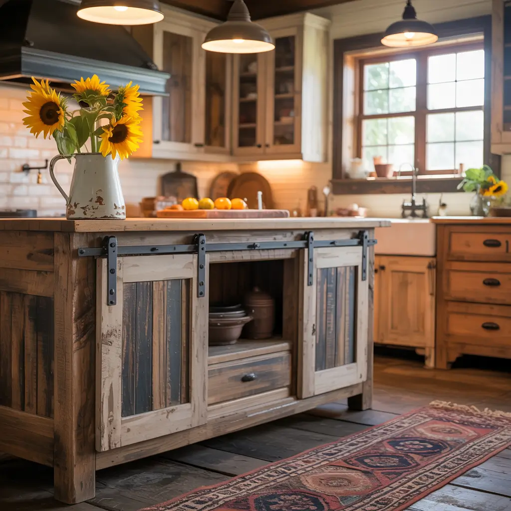 Sliding barn doors aren’t just for closets and pantries anymore, friends. When you mount miniature barn doors on your kitchen island, you get storage that’s both functional and ridiculously charming. I mean, who doesn’t love tiny hardware and sliding mechanisms?