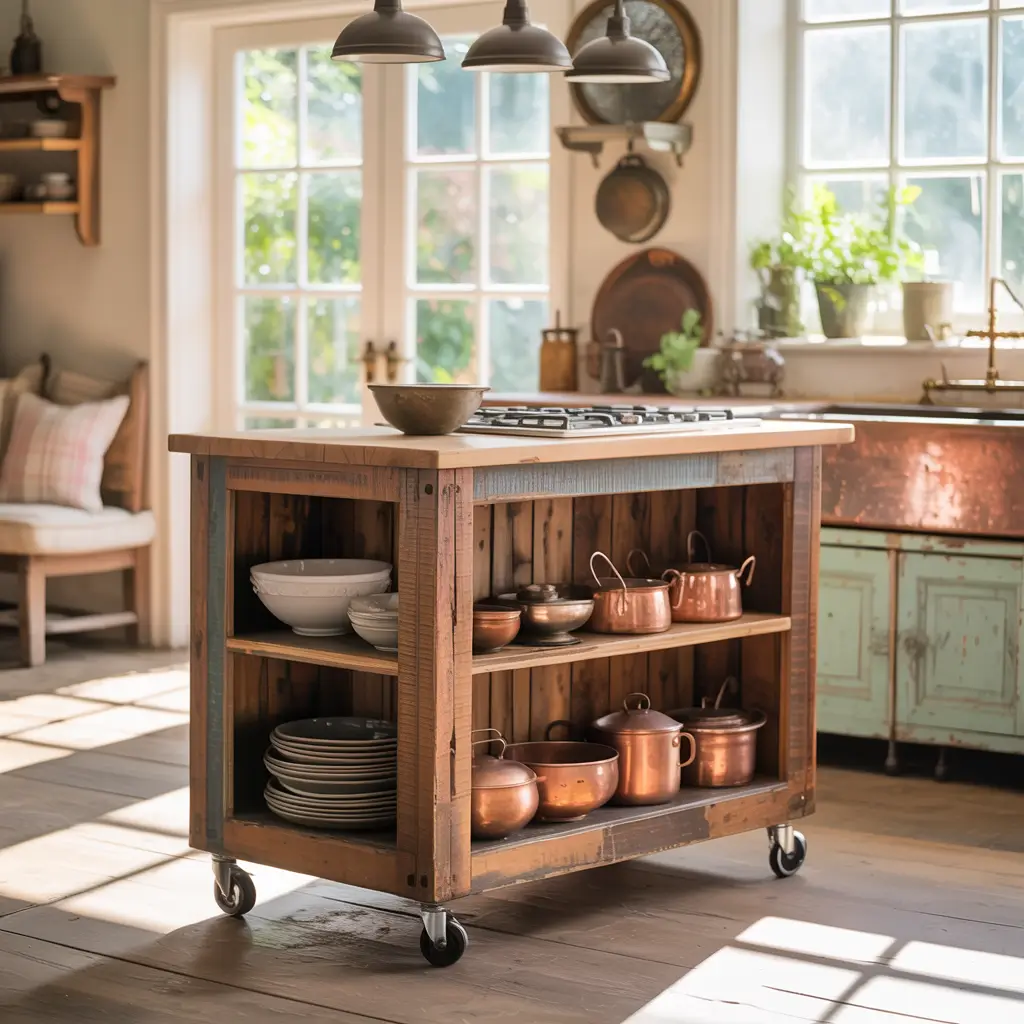 Design-wise, mobile islands often run smaller than permanent ones, which means you can load them up with character without overwhelming your space. Think distressed wood, open shelving, vintage hardware—all the farmhouse hits in a compact, movable package.