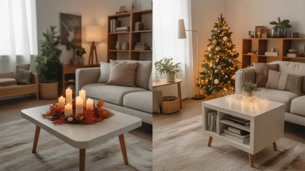 Here’s where things get fun: changing your side table decor with the seasons keeps your space feeling fresh without requiring a complete room overhaul. It’s like giving your living room a mini makeover four times a year.