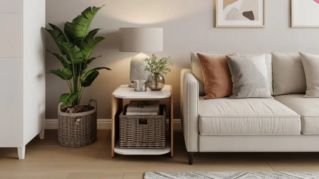 Living in a small space means every piece of furniture needs to work overtime. Your side table can’t just look pretty—it needs to actually solve storage and organizational problems while still contributing to your room’s aesthetic.