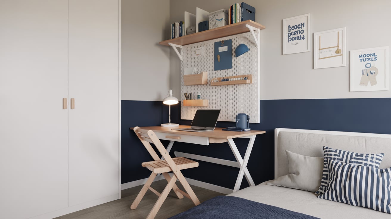 When I was designing my son’s small room, the full-sized desk left no space to play. Switching to a fold-down wall desk changed everything — now he studies, paints, and folds it back up in seconds!