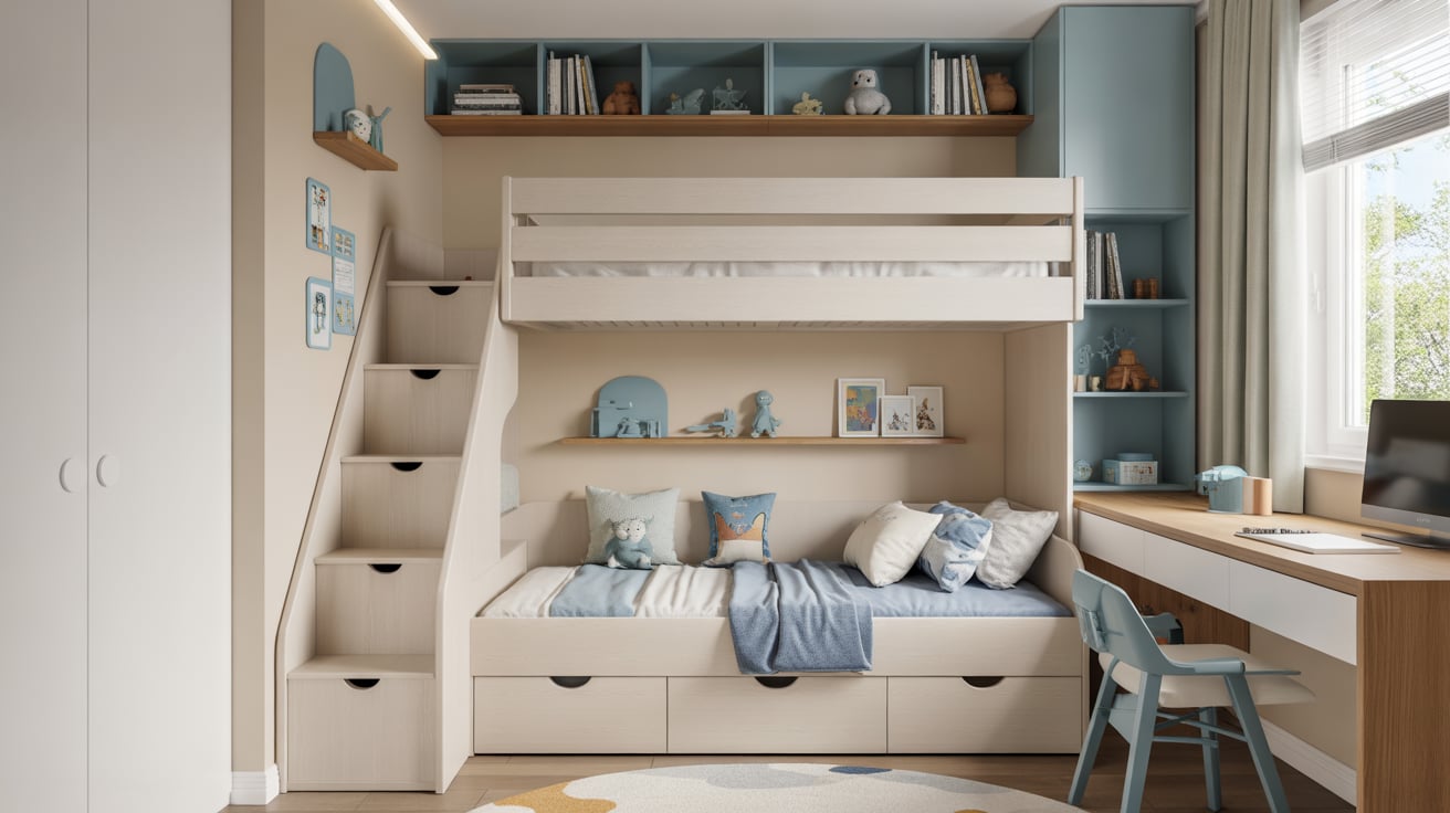 When my nephew moved into his tiny shared room, his toys took over the floor. The day we added a bunk bed with pull-out drawers underneath, it felt like we doubled the room size overnight! Suddenly, every car and Lego had its place.