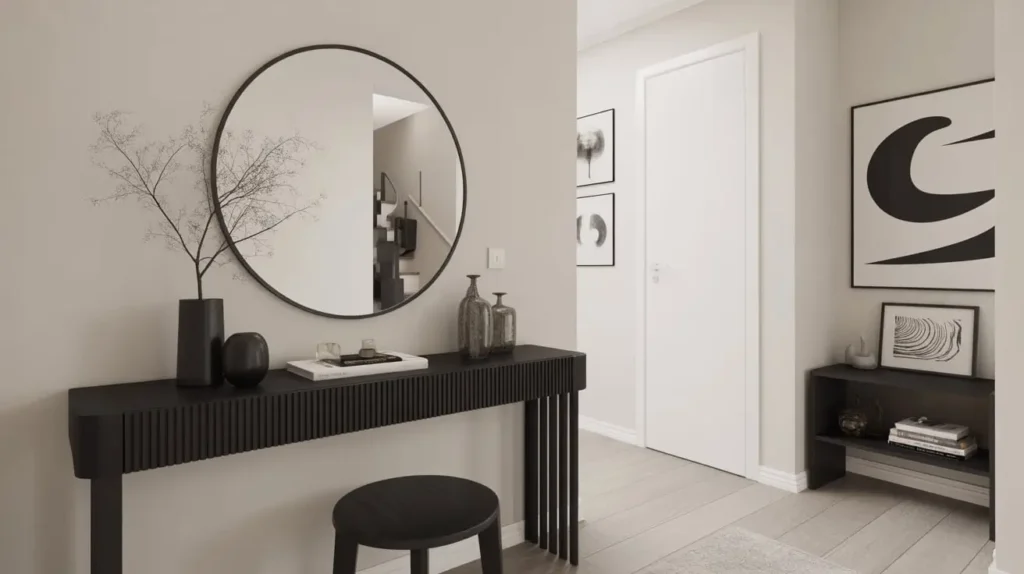Keep surfaces clear except for one or two carefully chosen items. Your foyer should feel like a deep breath, not a visual assault.