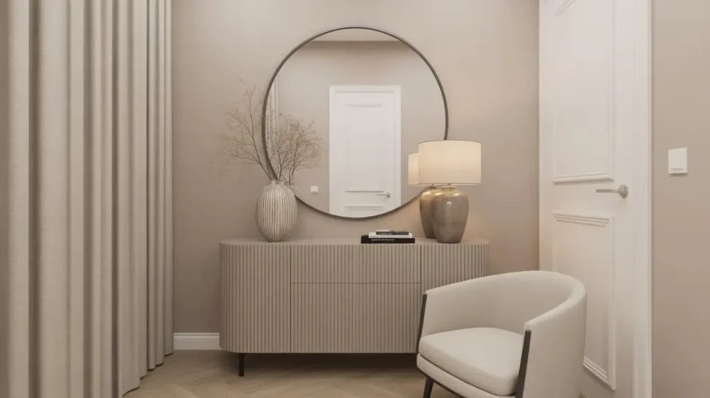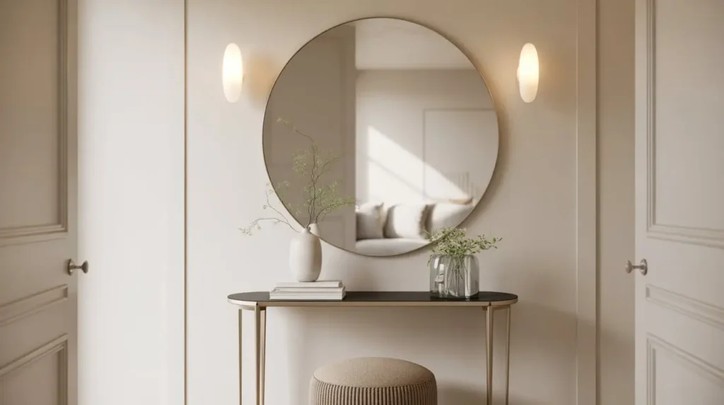 Mirrors genuinely work magic in small spaces because they bounce light around and create the illusion of depth. I learned this after living in a shoebox apartment where my foyer was basically a glorified hallway. One large oversized mirror (snagged mine from a thrift store for $25, BTW) completely changed the game.