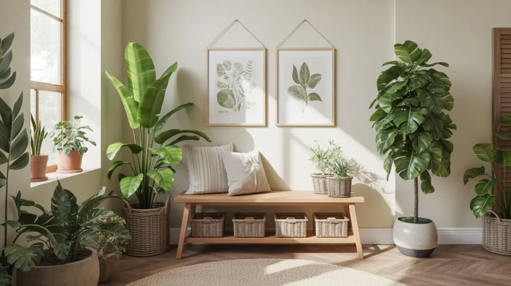 I keep a pothos on my floating shelf and a snake plant in the corner, and they require approximately zero effort while making my entry look intentional and fresh. Total investment? About $20 for both plants.