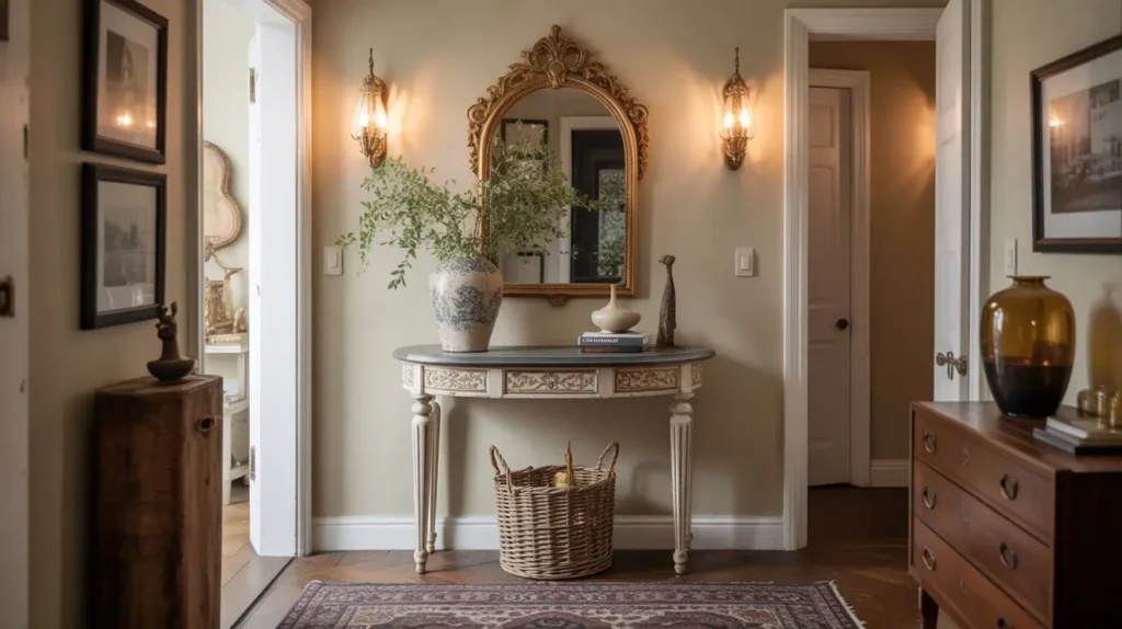 I’m not talking about expensive antiques here—I mean fun vintage finds from thrift stores, estate sales, and your grandma’s garage. These pieces have stories, and they make your entryway feel unique instead of catalog-generic.