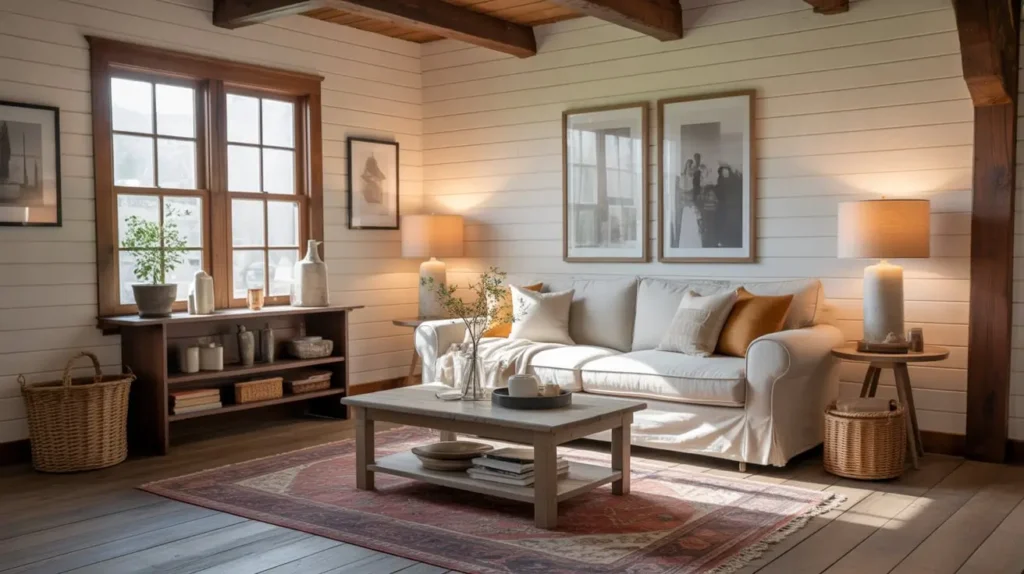The trick is bringing in rustic elements with restraint. A reclaimed wood coffee table, some vintage metal accents, maybe a sliding barn door if you’re feeling fancy—but all against a clean, minimal backdrop.