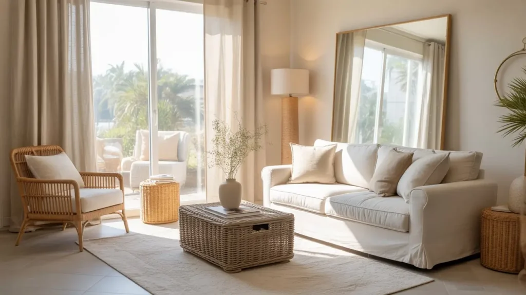 Start with whites, creams, soft grays, and warm taupes for your walls and larger furniture pieces. Then layer in texture to keep things interesting. A chunky knit throw, linen curtains, a jute rug—these add visual interest without adding color chaos.