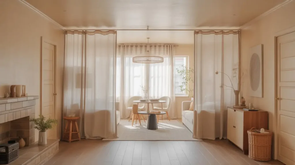 Sometimes you need to divide spaces without the commitment of actual walls or permanent dividers. Curtain zoning gives you flexible room division that you can open, close, or remove entirely based on your needs.