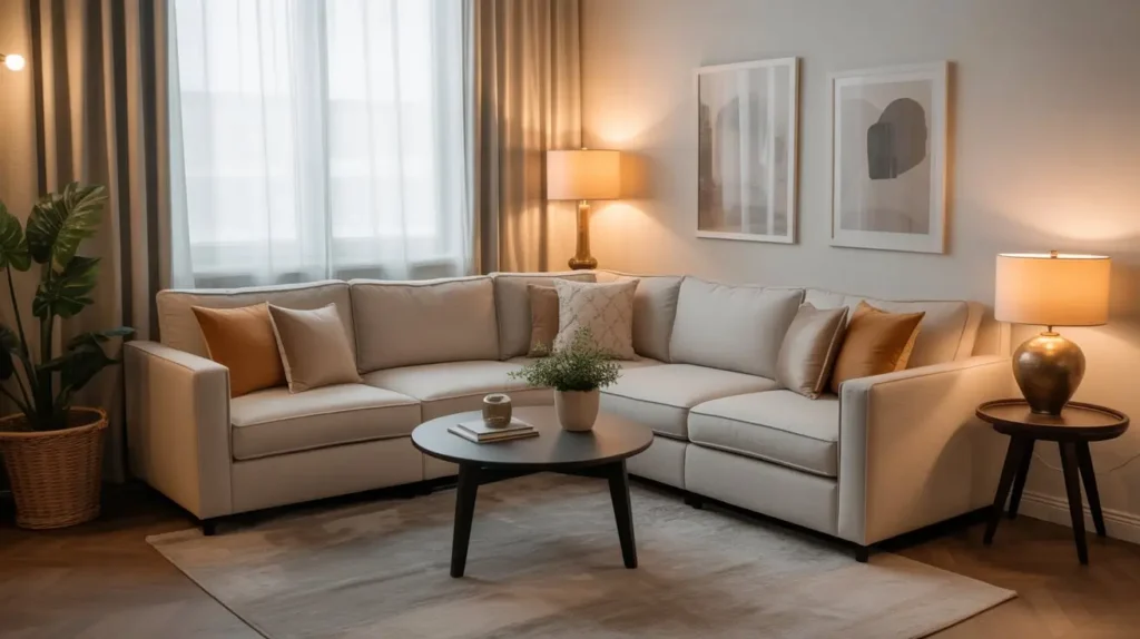 Corner placement is your friend here. Tuck that sectional into a corner, and you’ve suddenly got a defined seating zone that doesn’t block traffic flow. Plus, everyone loves a corner seat—it’s just science.